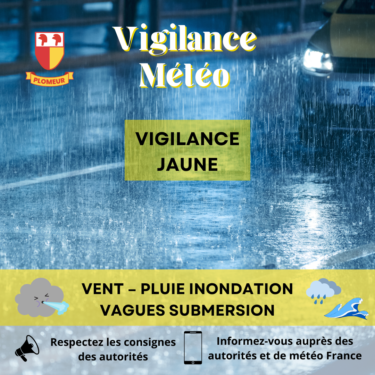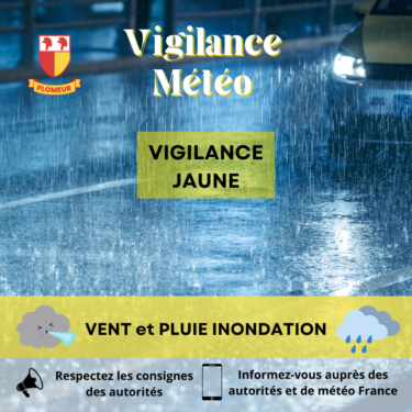 Alerte météo – Vigilance jaune PLUIE-INONDATION et Vent – 15/01