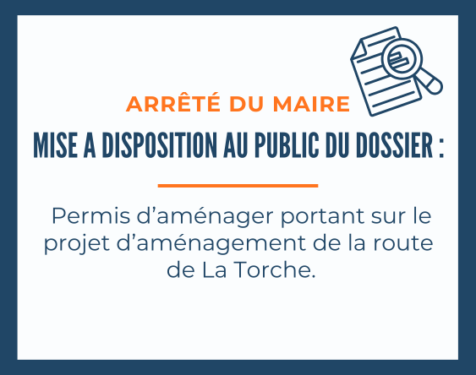 ARRETE DU MAIRE – Mise à disposition au public du dossier de permis d’aménager portant sur le projet d’aménagement de la route de la Torche